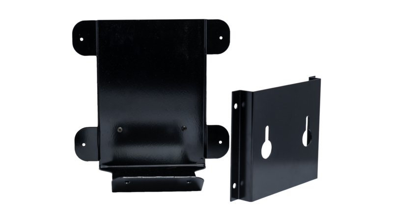 O design em duas peças facilita o processo de instalação: uma parte é fixada na parede e a outra no monitor, permitindo um encaixe rápido, firme e sem complicação. Ideal para quem precisa otimizar tempo sem abrir mão da segurança.